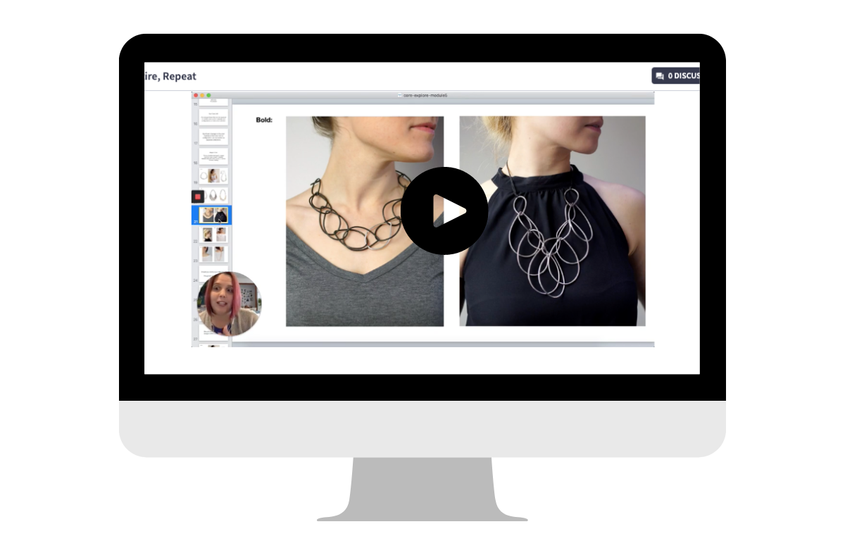 Core & Explore features five modules with videos, worksheets, and exercises, all designed to guide you through the process of developing your own distinctive jewelry line.